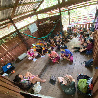 I (Aimee) stayed busy with teaching English classes at the local elementary school, for a small group of Rangers, medical students, and women. I also taught GLC (Good Life Club) and Advanced GLC classes to train our rangers to facilitate quality children's programs. One of my favorite projects though, was a new women's training project I started this year, where guest trainers taught several subjects including Coping Mechanisms for Children, Baking, Budgeting, Candle Making, and Gardening. Every weekend I hosted a movie night for local kids and facilitated a few craft times. Towards the end of our trip, I helped coordinate some Christmas parties with activities for kids, "shopping" with donated clothes for the adults, and gifts for all the school children and teachers. Overall, I felt so blessed to have this season in the jungle and was filled with joy to be together with loved ones there.